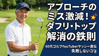 中高年の健康ゴルフ ダフリ・トップの直し方 アプローチのダフリ・トップを中高年向けにやさしく解説。右体重やすくい打ちなど原因と直し方をまとめ、今日からミスが減る改善法を紹介します。 2026.04.08 アプローチアプローチの基本ダフリ・トップの直し方中高年の健康ゴルフ