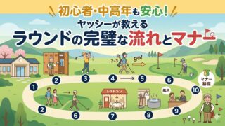 こんにちは、ヤッシーです。ゴルフを始めたばかりの方や、久しぶりにコースへ出る中高年の方にとって、一番不安なのは技術よりも「当日の流れ」や「マナー」ではないでしょうか。「周りに迷惑をかけたらどうしよう」「何を準備すればいいの?」とドキドキして...