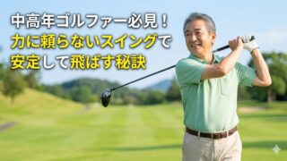 中高年の健康ゴルフ 力に頼らないスイングの作り方|中高年でも無理なく安定する方法 腕の力に頼らず、体の回転とクラブの重さで振る“やさしいスイング”を解説。中高年でも無理なく安定し、飛距離と方向性を高めるためのポイントと簡単ドリルを紹介します。 2026.03.18 中高年の健康ゴルフ力に頼らないスイングの作り方基本・入門