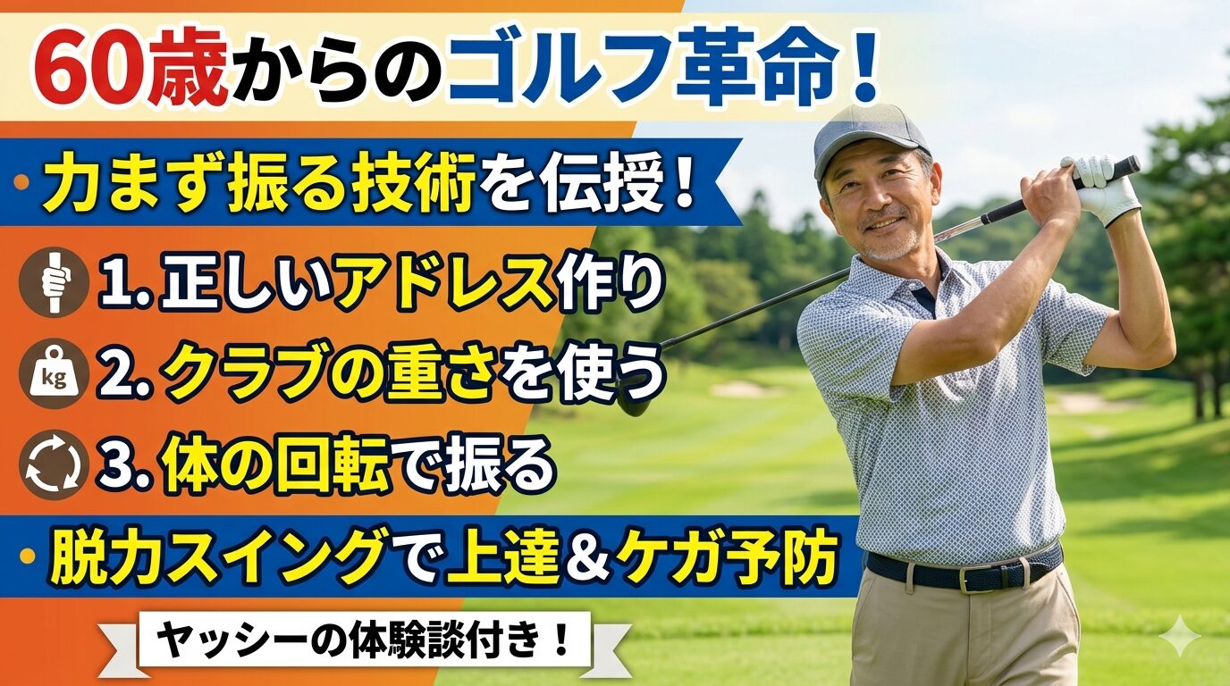 60歳を過ぎてゴルフを長く楽しむために、最も大切なのは健康です。 力を入れて強引に振るスイングは、実は体に大きなダメージを与えています。